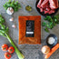 Ingredients: beef, oil, salt, herbs, garlic, tomato, onion, celery, carrot, chicken stock. May contain: pork, wheat, egg, dairy, soy or fish allergens. Some products may be processed in facilities that contain nuts.